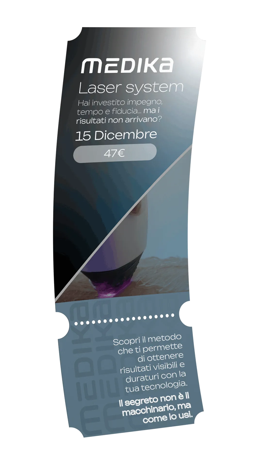 Iscriviti ora a una Masterclass pratica di 2 ore live (Lunedi 15 Dicembre ore 21.00) per titolari di centri estetici che vogliono finalmente ottenere risultati costanti con il laser e far crescere i guadagni del servizio.